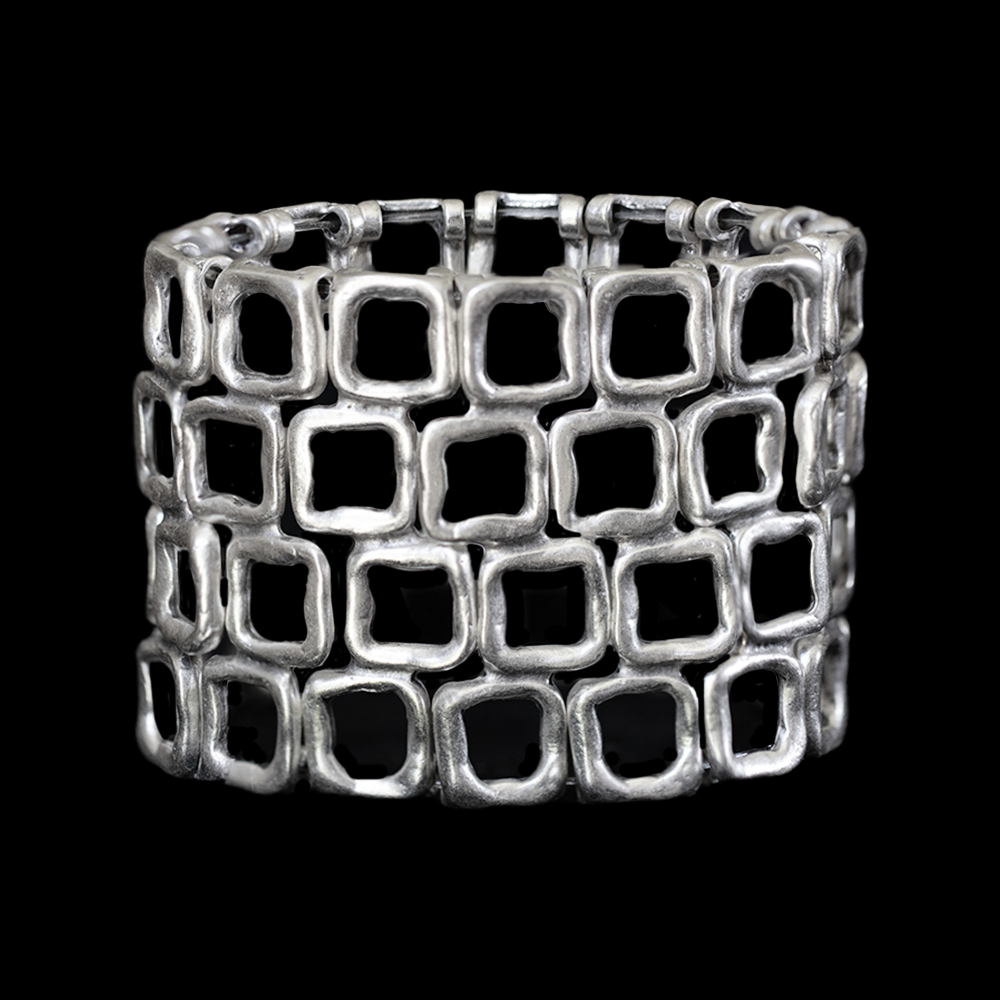 Armreif in Altsilber-Optik, Grundmaterial: feine Zinklegierung, nickelfrei, oberflächenveredelt durch eine Echtsilber Plattierung. Breite 60 mm