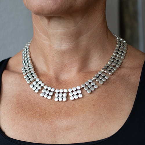 Collier in Altsilber-Optik, Grundmaterial: feine Zinklegierung, nickelfrei, oberflächenveredelt durch eine Echtsilber Plattierung