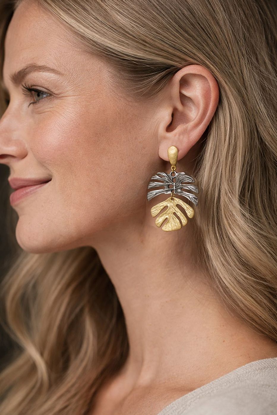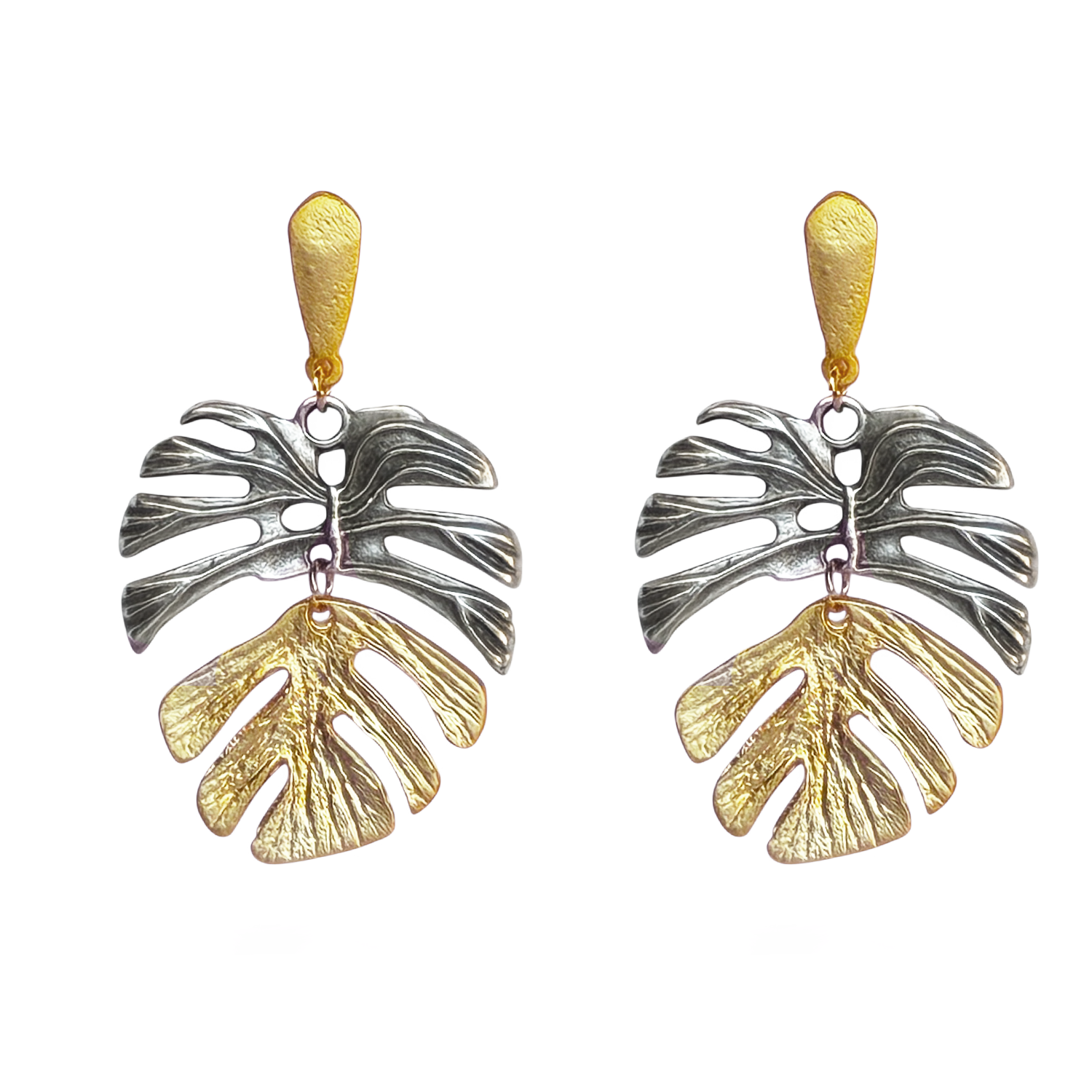 Ohrstecker bicolor in Gold und Altsilber-Optik.