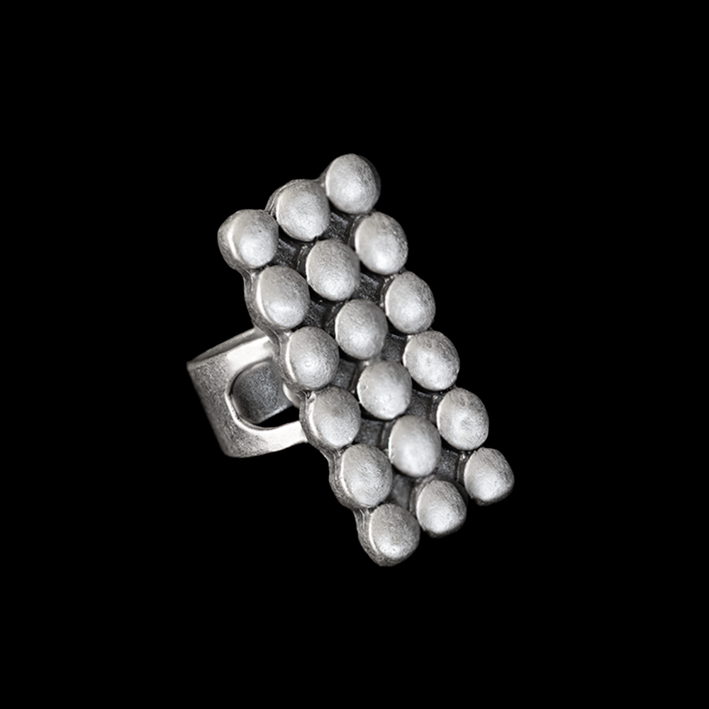 Ring in Altsilber-Optik, Ringgröße verstellbar, Grundmaterial: feine Zinklegierung, nickelfrei, oberflächenveredelt durch eine Echtsilber Plattierung. Maße: 30 x 15 mm