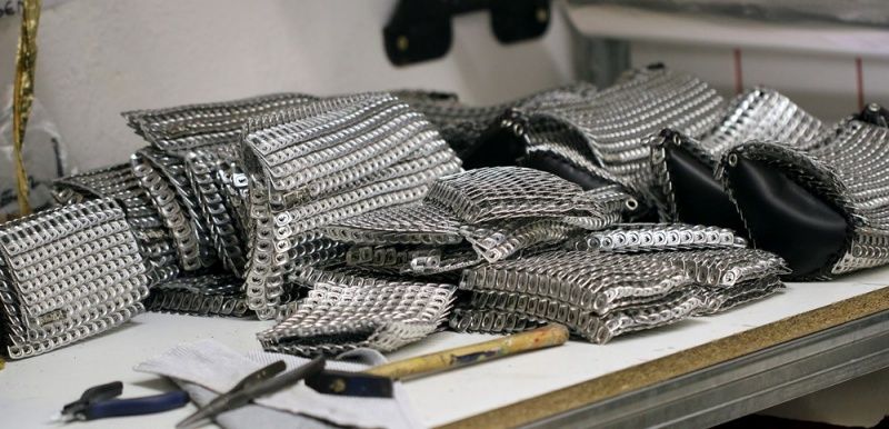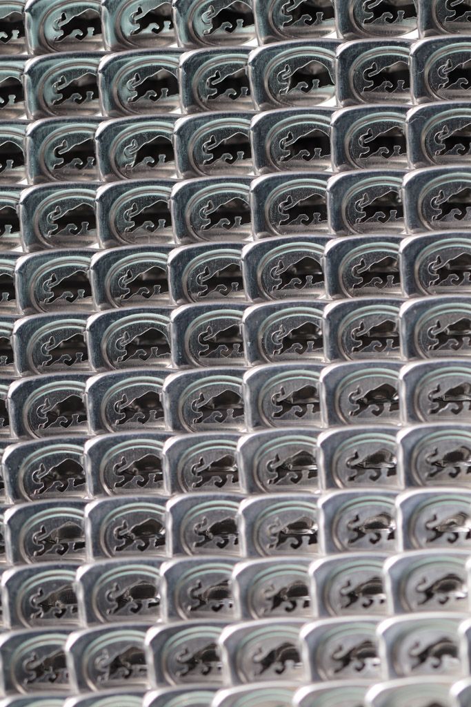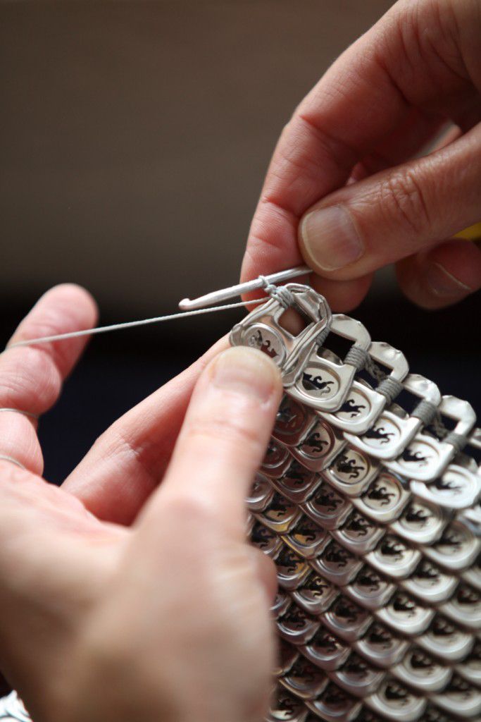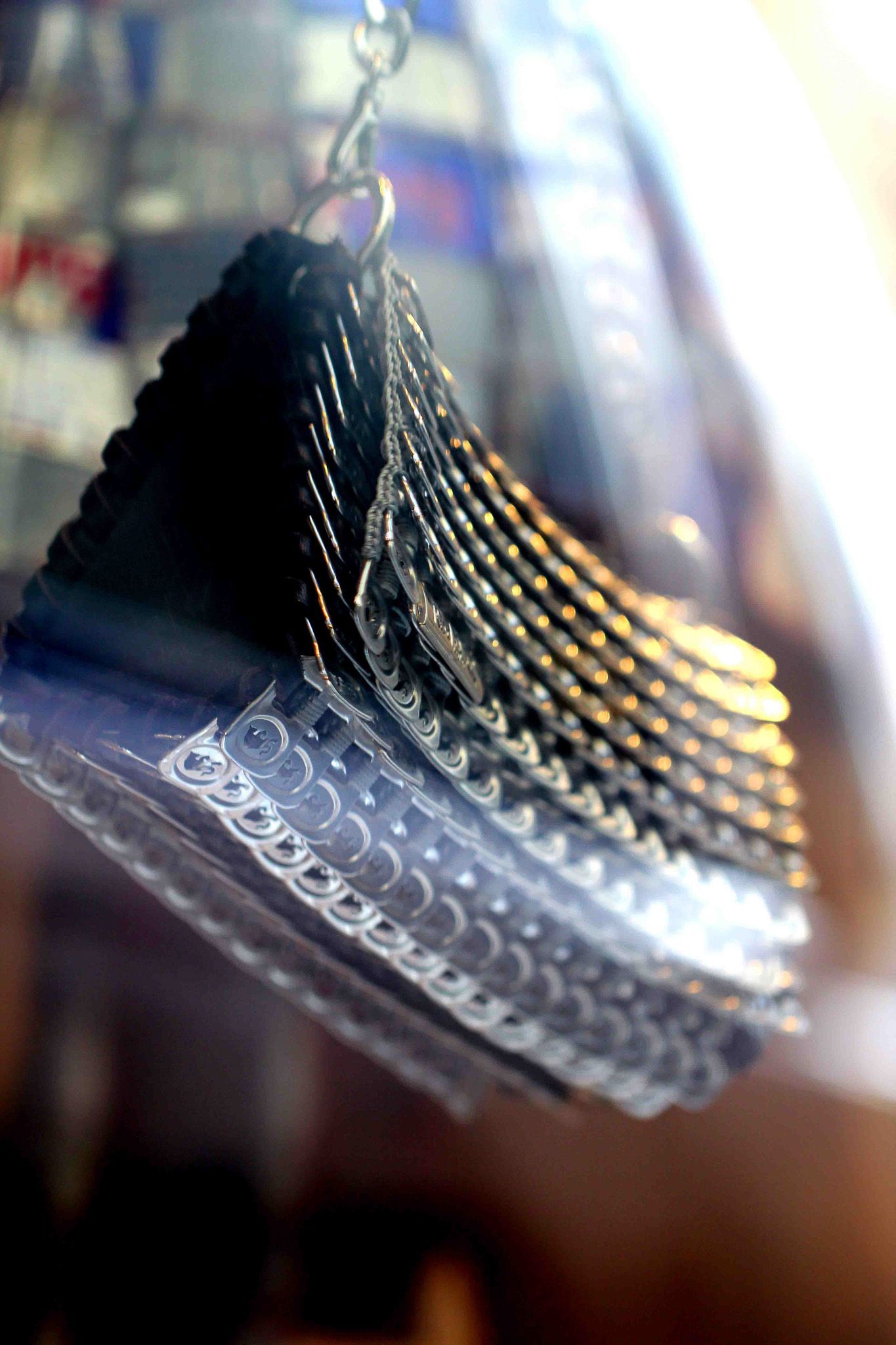 IN EDLEM SILBER GEHALTEN, ERGEBEN DIE ANEINANDERGEHÄKELTEN DOSENRINGE ECHTER RED BULL DOSEN EINEN EXKLUSIVEN, GLAMOURÖSEN LOOK. DIE TASCHENKOLLEKTION VON ROBERTO LEONARDI IST EXKLUSIV IN DEN Stores der RED BULL WORLD ERHÄLTLICH.