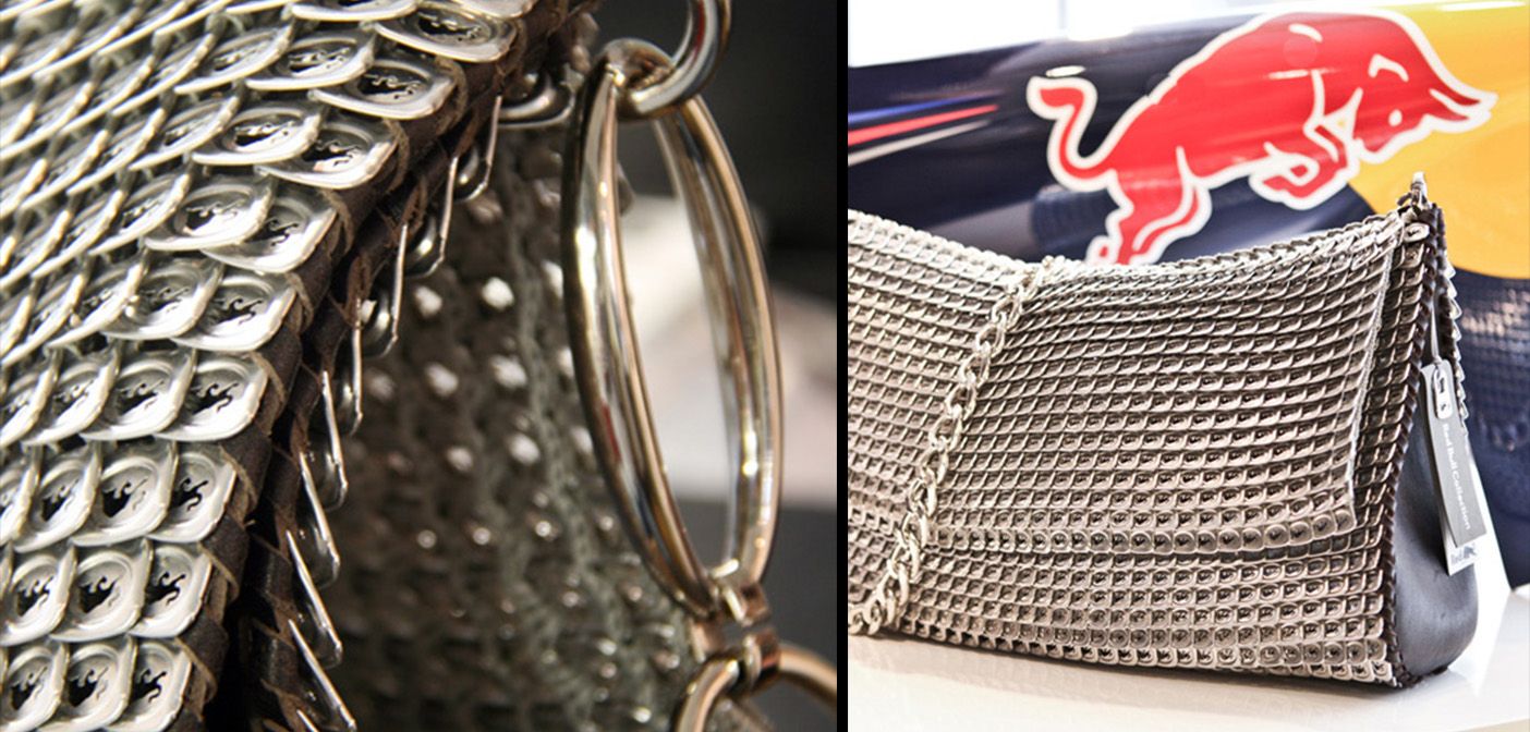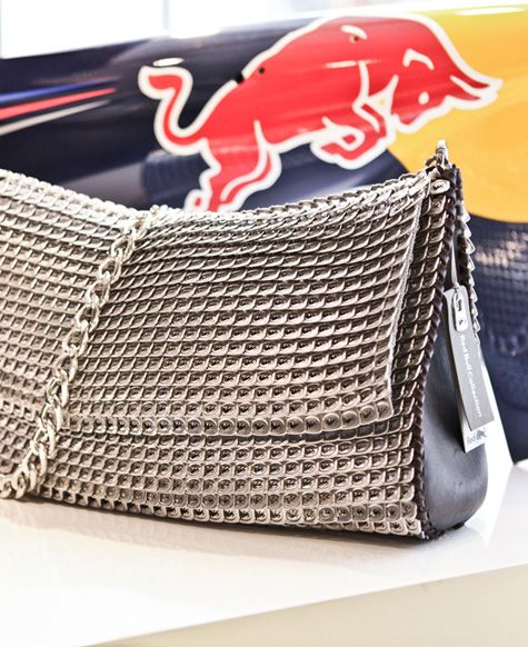 DIE CHARAKTERISTISCHEN DOSENRINGE VON RED BULL INSPIRIERTEN ROBERTO LEONARDI ZU EINER TASCHENKOLLEKTION, MIT DER JEDE FRAU DIE BLICKE AUF SICH ZIEHT