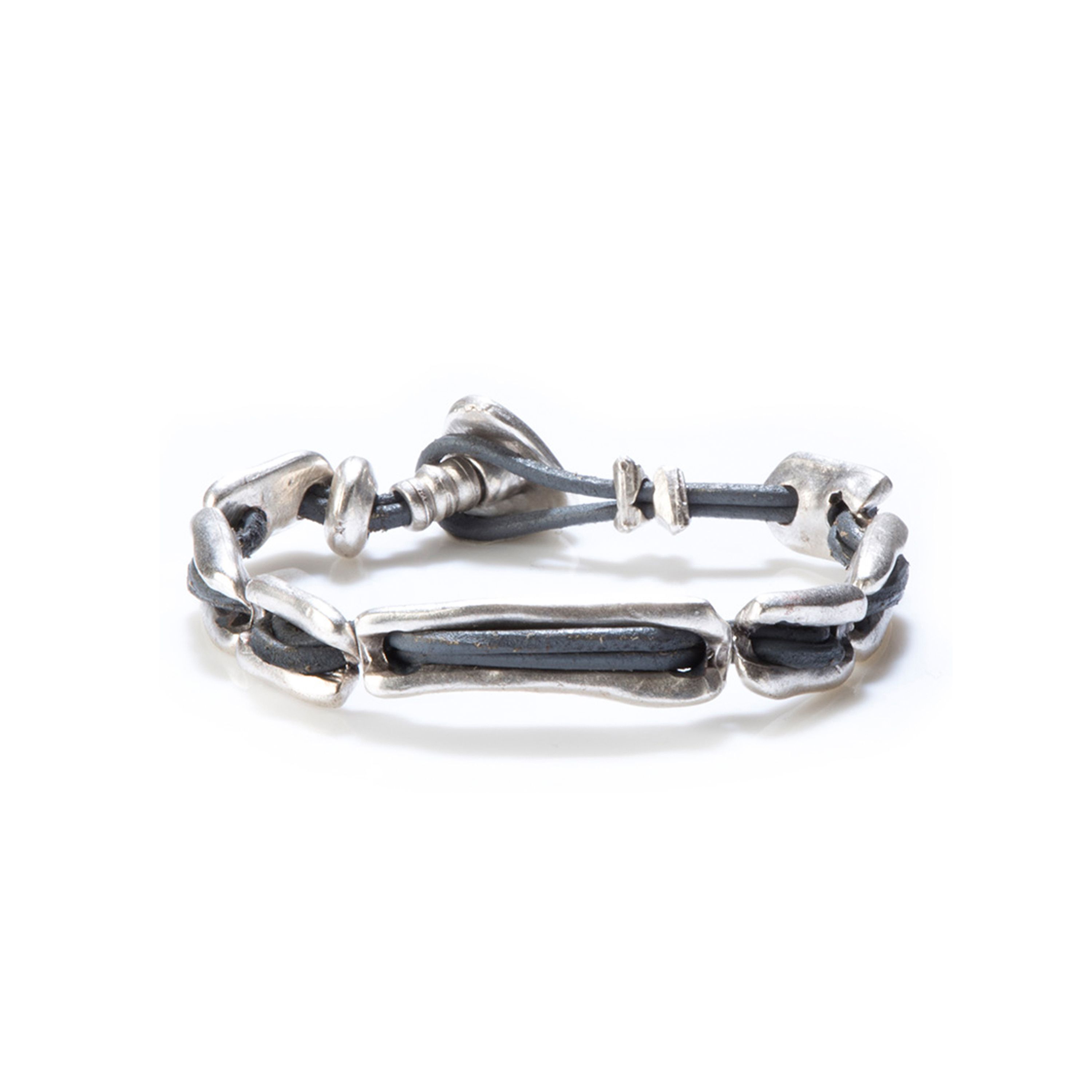 Material: Einzelteile Legierung / Zink, Aluminium, Magnesium, Kupfer, versilbert auf Ziegenlederband