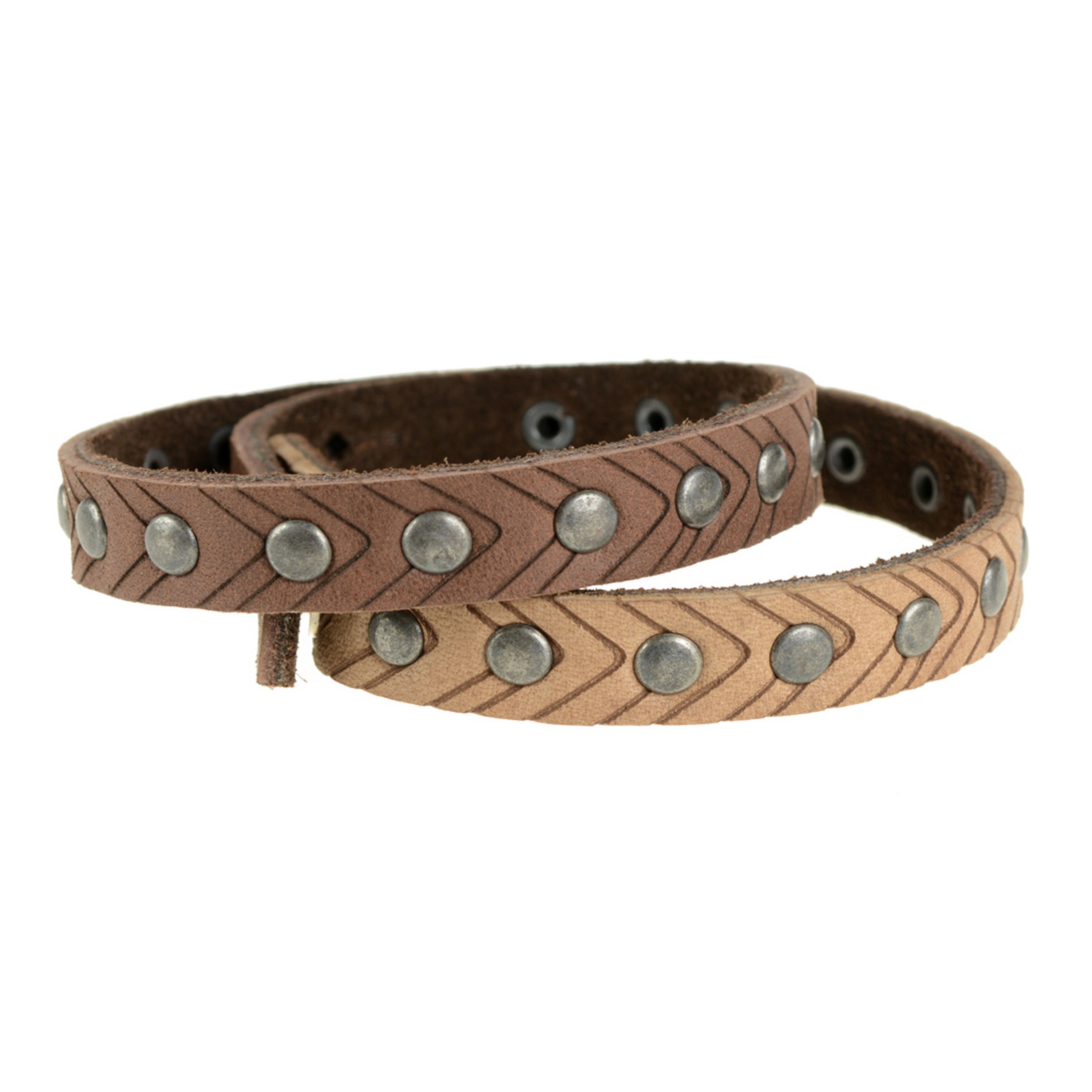 Dieses zweifarbige Armband ist mit Nieten besetzt und gelasert. Es wertet jedes Qutfit auf und sorgt immer für den richtigen Auftritt. Die gewohnt hochwertige Qualität aus unserem Haus und die ausgezeichnete Verarbeitung sorgen für einen besonderen Tragekomfort.