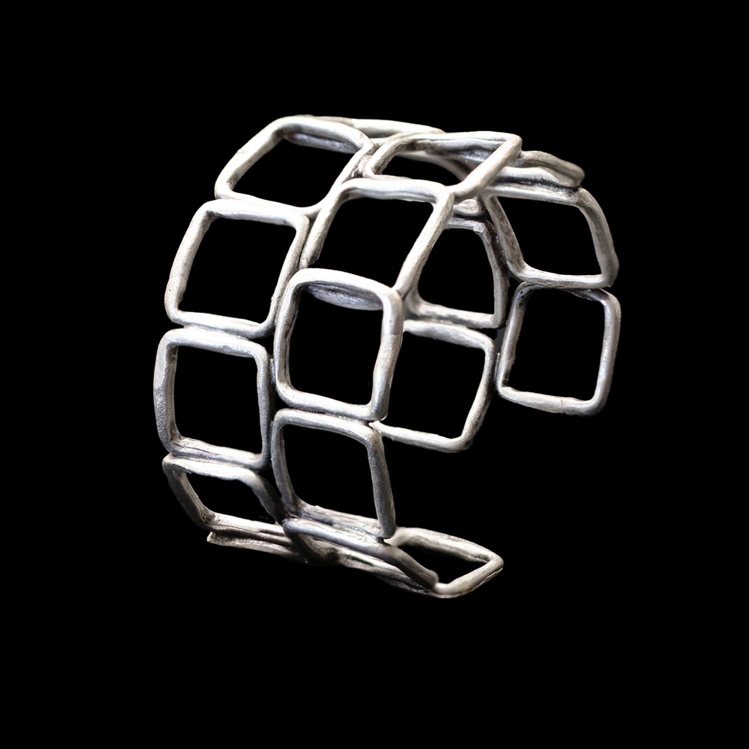 Armreif in Altsilber-Optik, Grundmaterial: Messing, nickelfrei, oberflächenveredelt durch eine Echtsilber Plattierung. Breite 60 mm