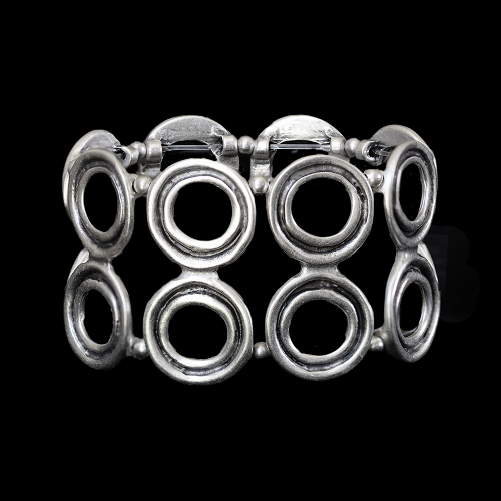 Armreif in Altsilber-Optik, Grundmaterial: feine Zinklegierung, nickelfrei, oberflächenveredelt durch eine Echtsilber Plattierung. Breite 40 mm