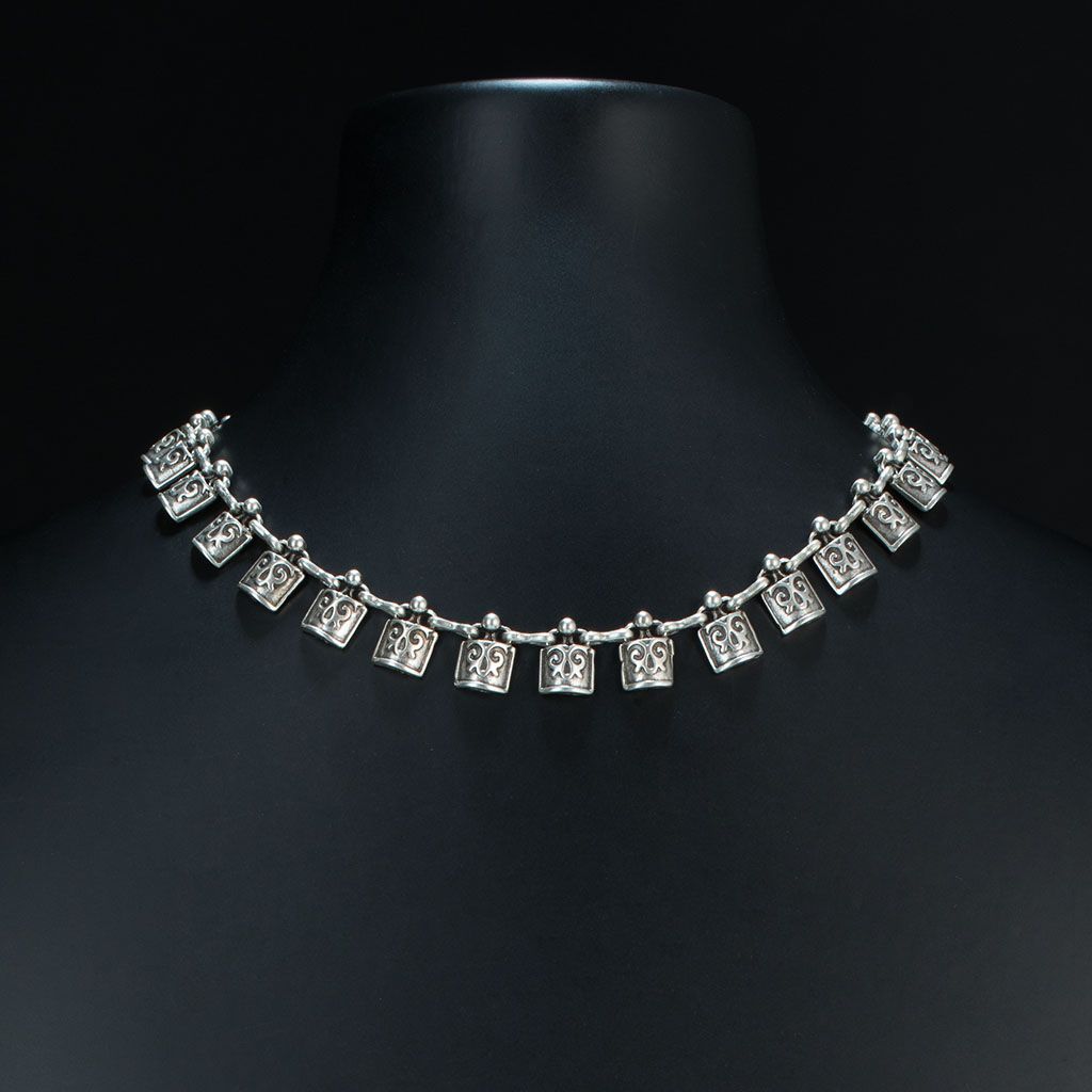 The LEONARDIarte collection consists of nickel-free alloys such as zamak and brass. The antique silver look is created by surface coating with 925 sterling silver and an elaborate finishing technique.