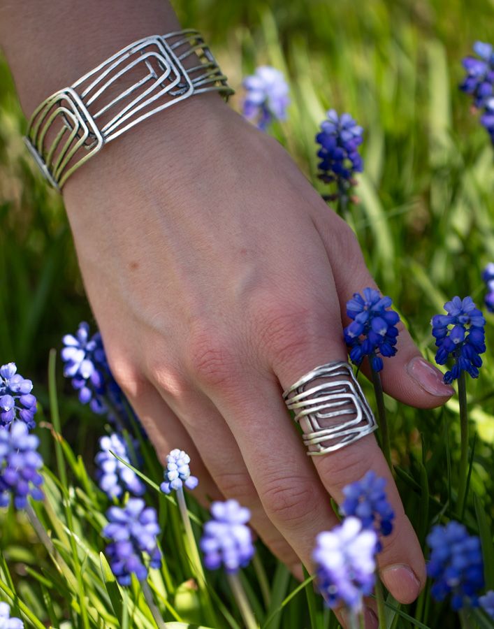 Ring in Altsilber-Optik, Ringgröße verstellbar, Grundmaterial: Messing, nickelfrei, oberflächenveredelt durch eine Echtsilber Plattierung. Maße: B 20 mm