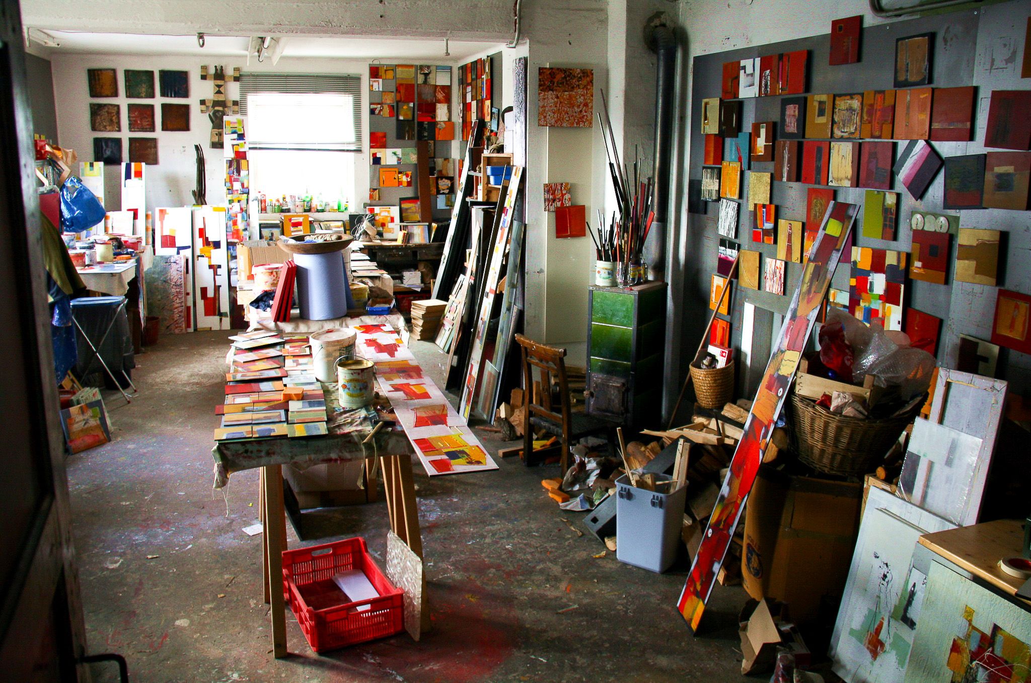 A FORMER HORSE-DRAWN CARRIAGE STATION THAT SERVED AS A LORRY GARAGE BECAME HIS PERMANENT STUDIO. IN THIS SPECIAL PLACE IN THE TRANQUIL VILLAGE OF MAUTERNDORF IN SALZBURGER LAND, HE CULTIVATED LIVELY CONVERSATIONS WITH CUSTOMERS AND FRIENDS ABOUT ART, LIFE AND THE MEANING OF BEING. AS A SPIRITUAL MAN, THE EXCHANGE WITH PEOPLE WAS CLOSE TO HIS HEART. A PROFOUND ENCOUNTER OVER A GLASS OF WINE AWAKENED THE GREATEST JOY IN HIM.